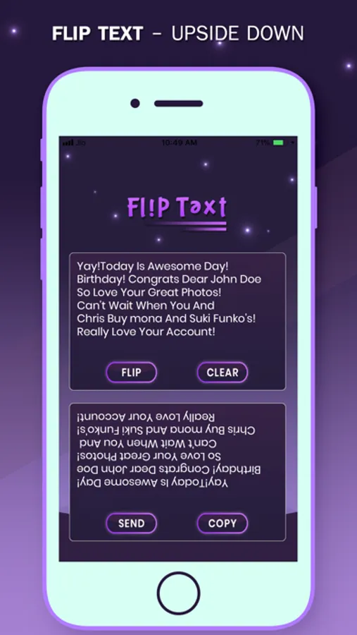 Our new design Flip Text Style - Upside Down application. in our application you can change your name text with a flip into horizontally and also with vertically side option.you can also copy text to share on any sides.