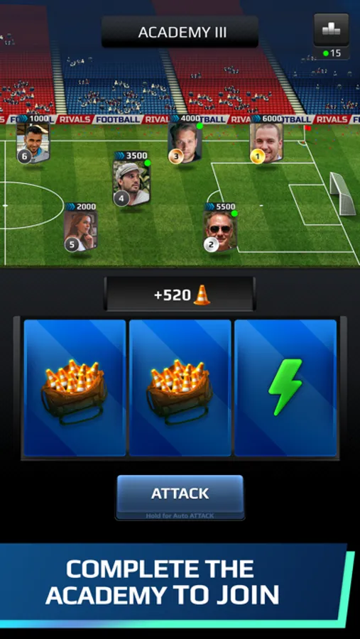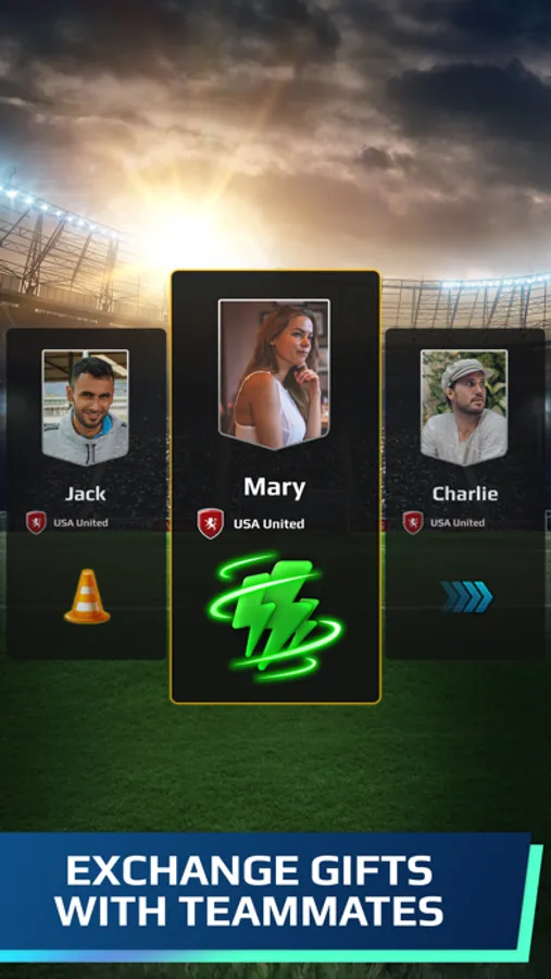 • Energy to play a slot machine - attack opponents in a penalty shootout mini-game, help your teammates & friends with gifts, level up and become the hero of your team