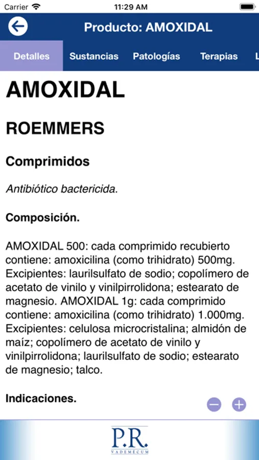 PR Vademécum no debe considerarse un medio autónomo y suficiente para recetar aquellos medicamentos o sustancias sobre los que informa; sus destinatarios deben utilizarlo como un complemento de su indelegable responsabilidad profesional, teniendo en cuenta que el lector posee los conocimientos necesarios para interpretar la información aportada por este aplicativo.