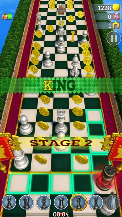 To advance further along the endless road, you have to take all pieces that are sent your way – every piece taken will give you more time and a queen is worth more than a pawn. Analyze your options quickly and then consider those of your opponent – just like chess. But the clock keeps ticking, you have to react fast to keep moving and to beat the high score – as you are competing with players all over the world for the top rank.