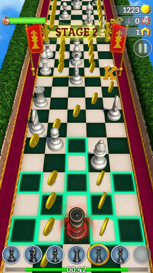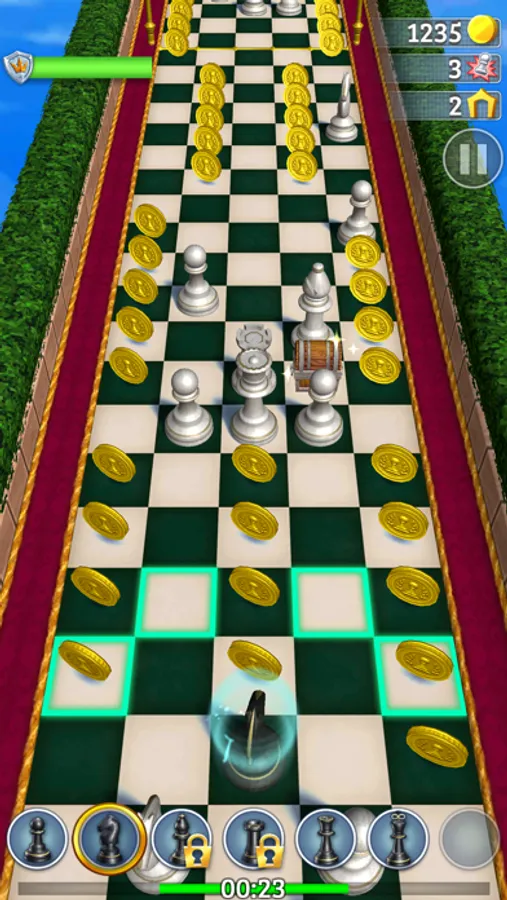 ChessFinity is a totally new spin on chess. While adapting the rules from the most famous strategy game of all times, ChessFinity adds the thrill of an endless runner. We’ve taken the traditional chessboard and transformed it into a never-ending road to victory. You control one piece from the roster at a time, but you can always swap - from knight to king, from bishop to rook, whatever the situation requires. Try to survive as long as you can and score as many points as possible.