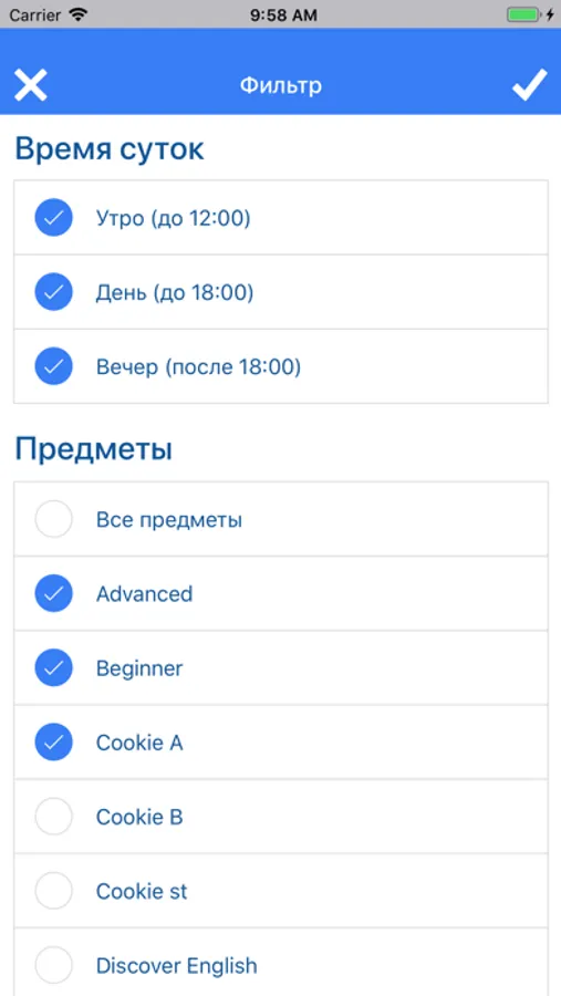 - Расписание занятий/переносов занятий