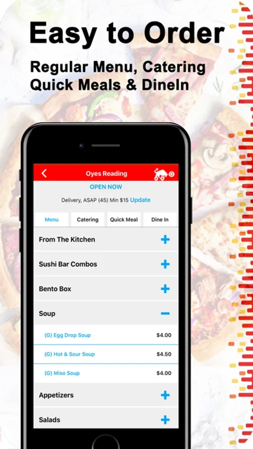 Regular Menu, Catering menu, Dine In, Quick Meals of Lunch all in one App. Order Fast, Save address for delivery, Insta Order form History, Add restaurant to you Favorites, Quick Support Callback,