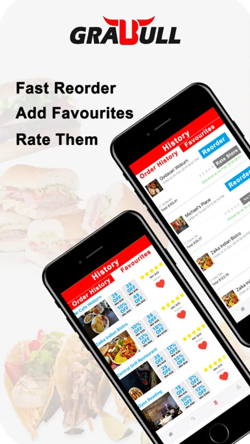 Choose from Hundreds of Restaurants around you and order online for Delivery or Takeout with Discounts, Offers and also Get Return Rewards from Grabull every time you order. Our app is Full of Multiple Features for your Convenience. The whole app is based on Convenience & Savings for all.