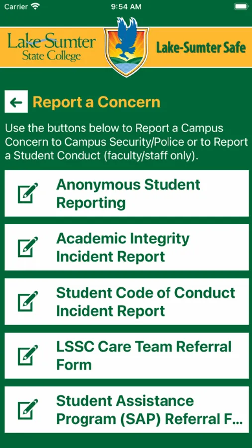 - Report a Concern: Multiple ways to report a safety/security concern directly to LSSC security.