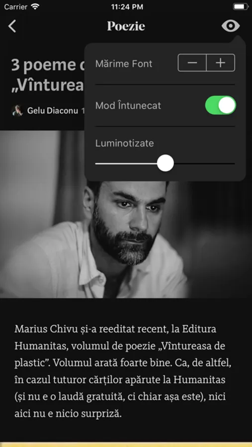 - ajustează luminozitatea astfel încât să ai cea mai bună experiență de citire