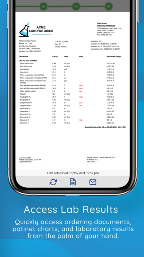 * Receive notifications and alerts if your order status changes, including newly available Results