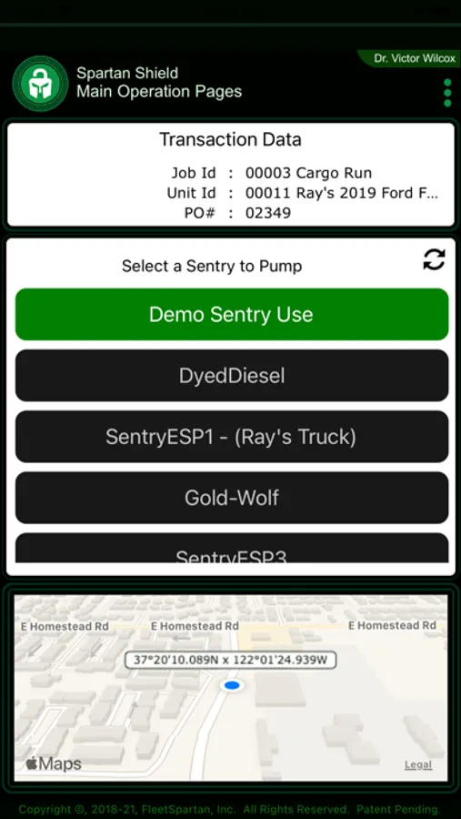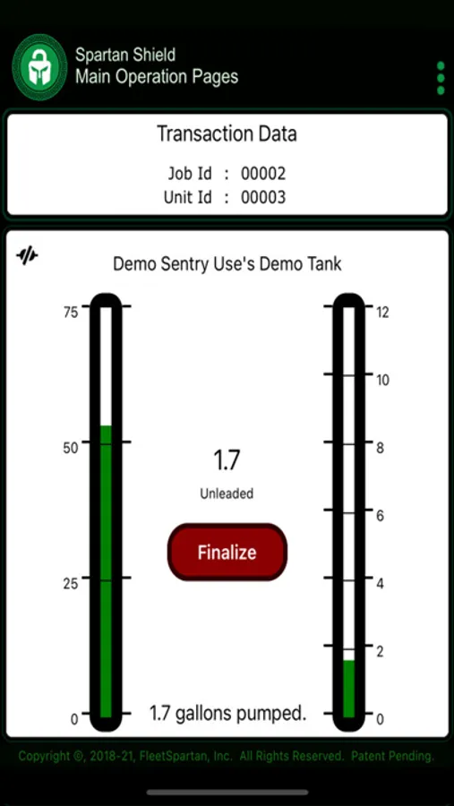 Spartan Shield is the mobile interface for customers of FleetSpartan (www.FleetSpartan.com) that allows them to authorize fuel acquisition from pumping stations featuring the Spartan Sentry system.