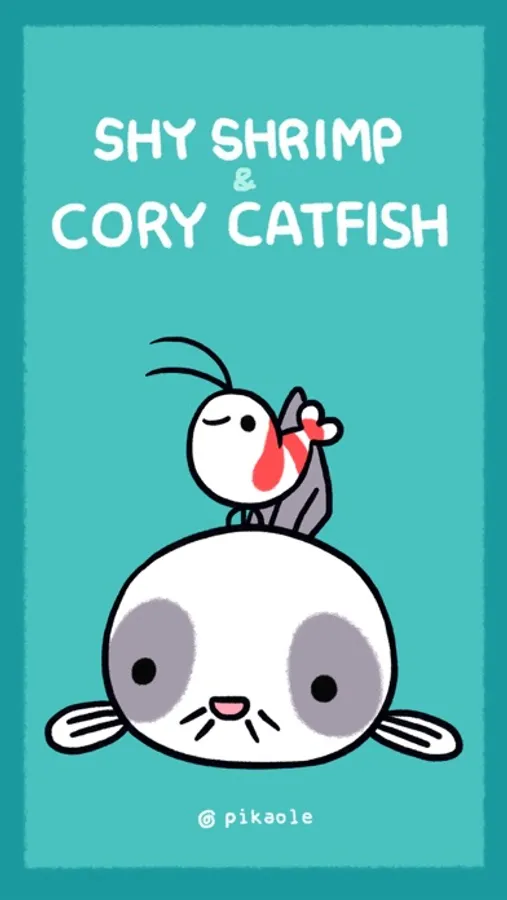 Shy shrimp(Bee shrimp) and Corydoras panda catfish.