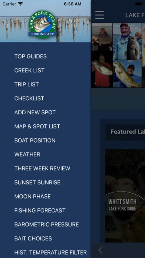 The App presents 4 outstanding Lake Fork Texas licensed professional fishing guides who bring experience, knowledge & know how to target the Big Bass in Lake Fork.