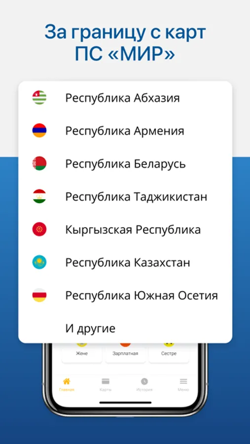 • Переводы между картами РФ (MasterCard, Maestro, Visa, МИР);