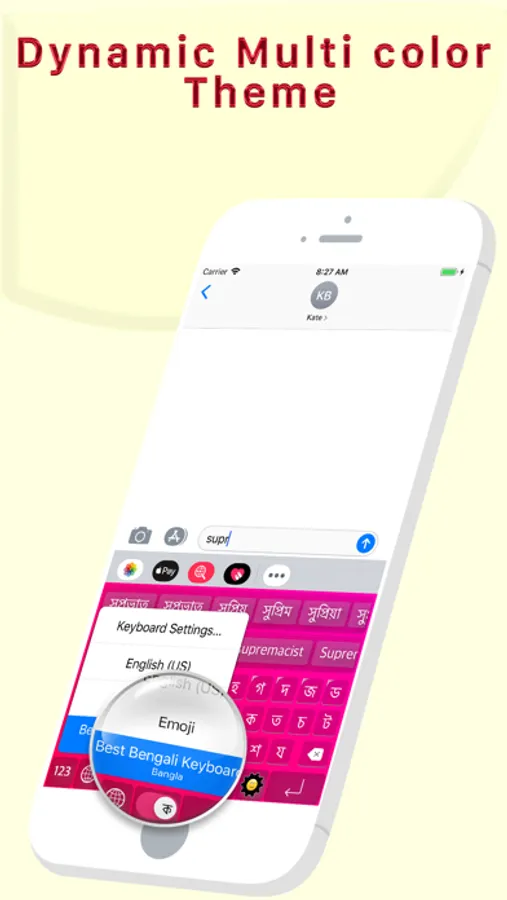 Now finally open any of the WhatsApp, Facebook, Email, Notes, Twitter, SMS app, and long press the Globe icon from the default keyboard, now choose the BEST BANGLA Keyboard Option.