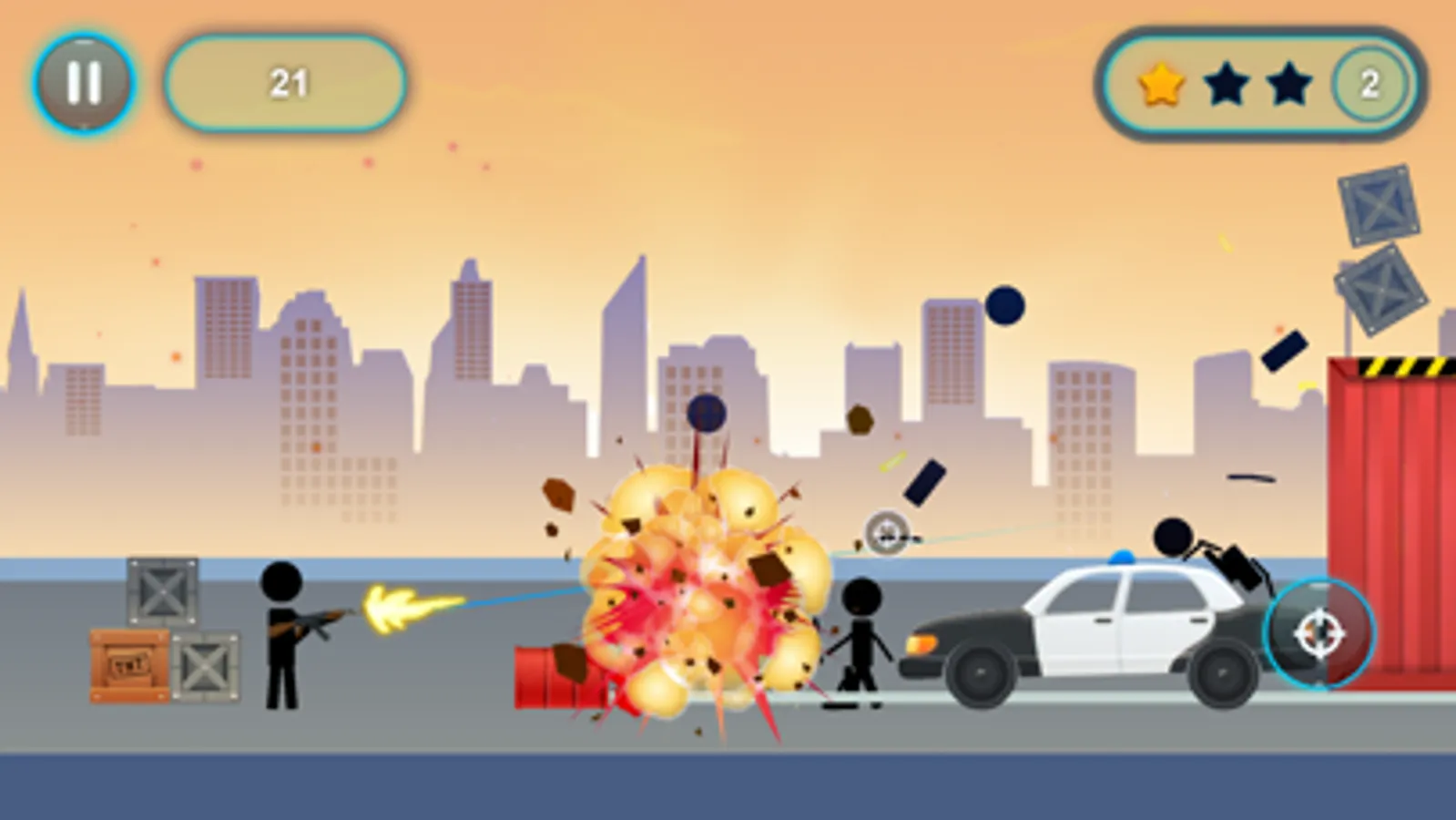 Fight the police and military. Arrange a battle with gangsters who want to rob a bank. Shoot from brutal weapons. Blow up everything around and destroy buildings.Watch how stickmans fly apart. Take part in the stickman war now!