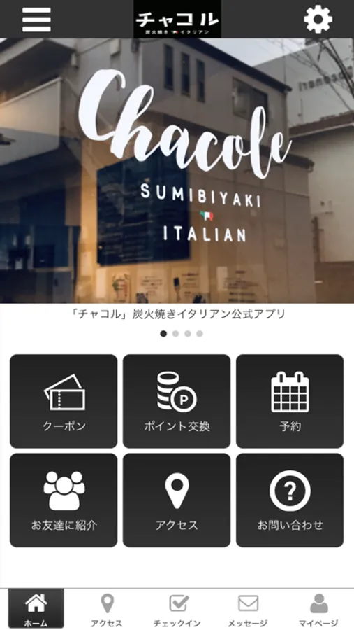 このアプリでは、チャコルの最新情報の受け取りや便利な機能を使う事ができます。