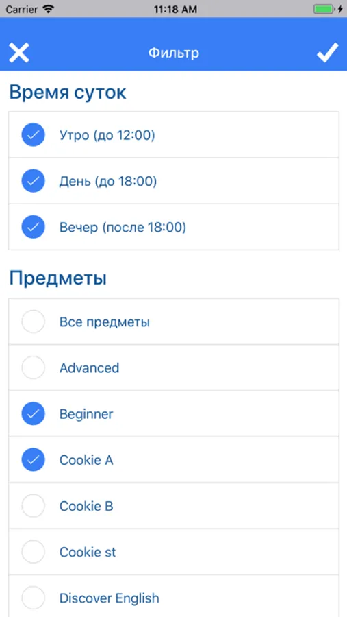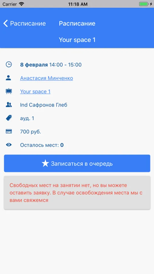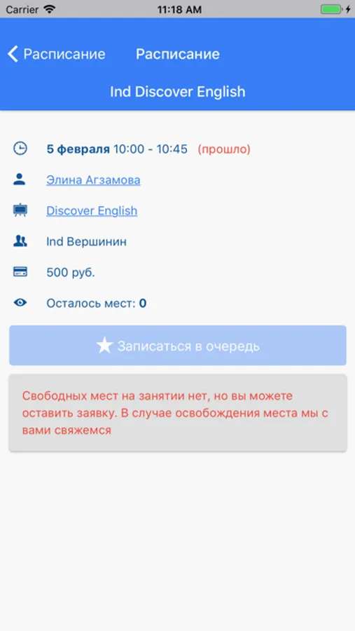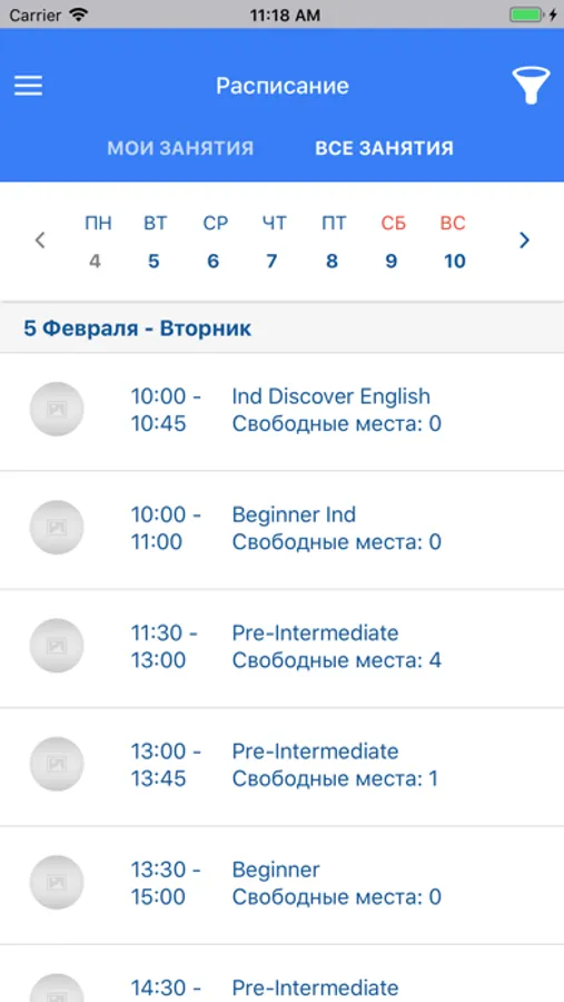 - Расписание занятий/переносов занятий