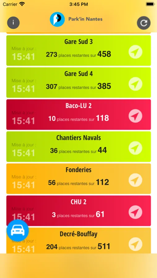 En quelques secondes vous visualisez en direct* les disponibilités des parkings Nantais sur votre iPhone :