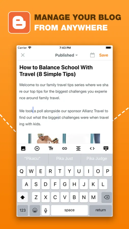 Blogg gives you the full power of Google's Blogger platform on the go. You can manage your blog from anywhere.
