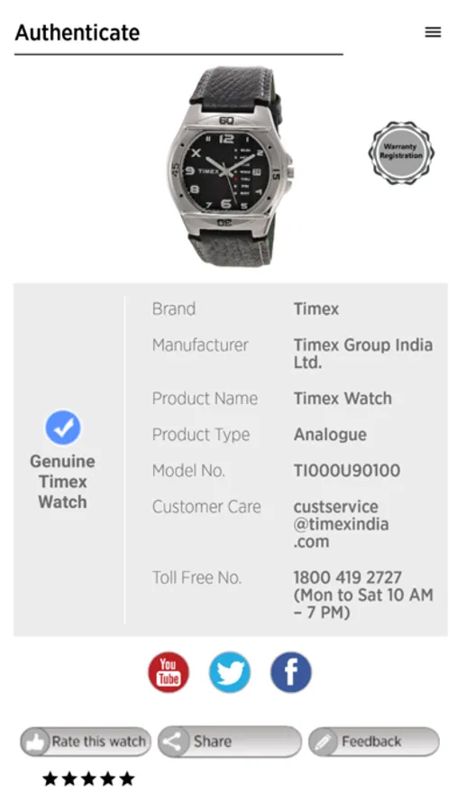 · Scan the QR code and get a screen & voice message which will authenticate that you have purchased a genuine watch