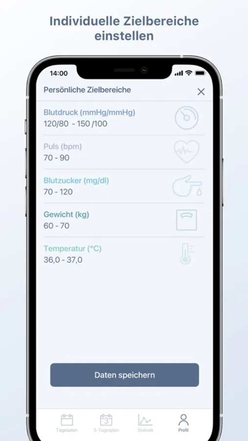 · IHRE DATEN IMMER IM BLICK: MyHealthDiary bietet Ihnen jederzeit eine übersichtliche und konfigurierbare Darstellung Ihren Daten.