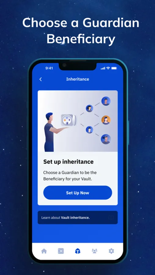 Ensure your digital assets are accessible to future generations. Vault12 Guard's Digital Inheritance feature enables you to designate a trusted individual to inherit your entire digital portfolio, eliminating risks and the need for constant updates.