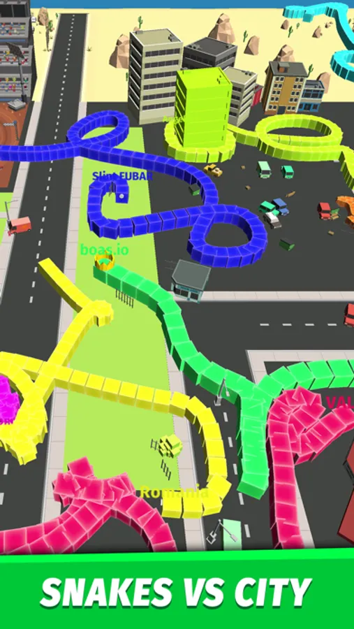 Eat everything on the map by surrounding and get your tail longer to eat more. Compete versus snakes in the city. Keep yourself among the best and hit a win strike!