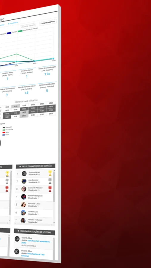 Fomente seus valores e cultura, garantindo aos usuários uma experiencia de reconhecimento e participação nunca vistos antes. Fique por dentro dos próximos eventos, acontecimentos e novidades, compartilhe os resultados atualizados feedbacks e promova a interação entre todos os usuários.