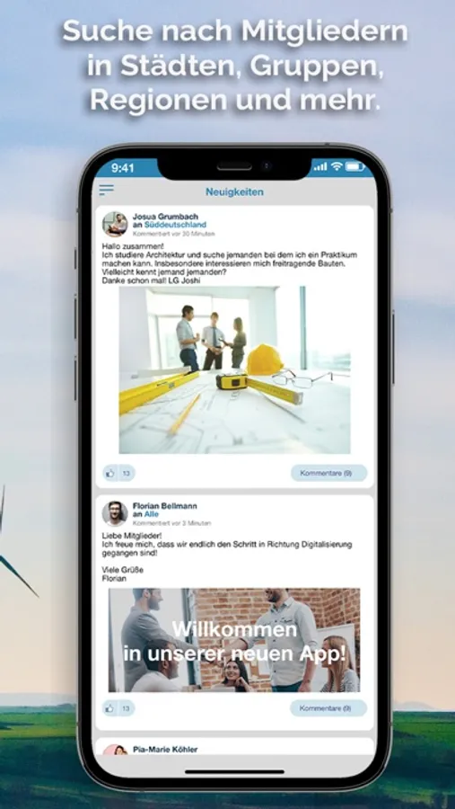 Chatten mit Vereinsmitgliedern, Organisieren von Events, berufliches und privates Vernetzen.