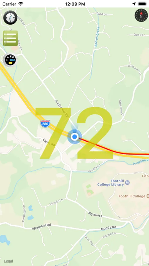 - Click the "Trace" button (clawed paw). This button enables / disables the display of your trace on the screen (red line). For example, you do not need to show the way when you are driving a familiar track and you only need a speedometer. Or when you drive a yacht with one long tack and you only need directions to maintain the chosen course.
