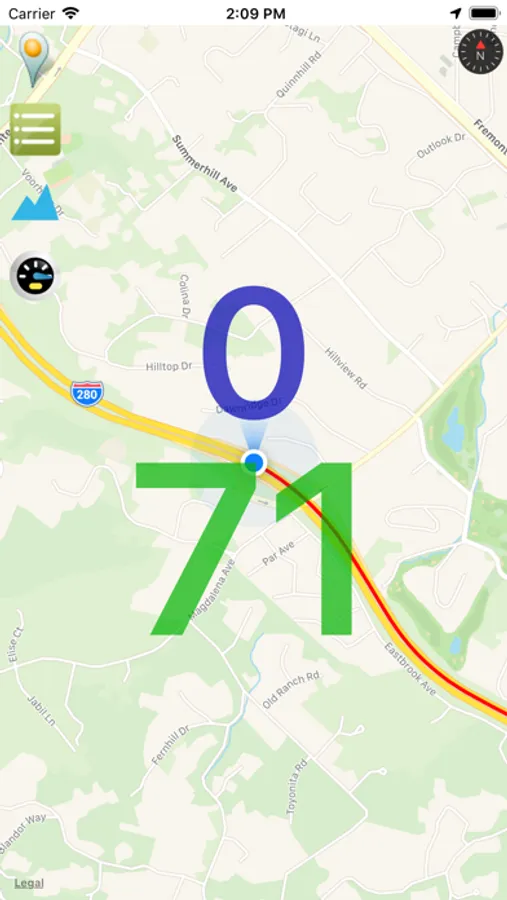 - Click the "Altimeter" button (mountains) at the top left to turn the altimeter on or off. The altimeter shows your current height in large blue numbers.