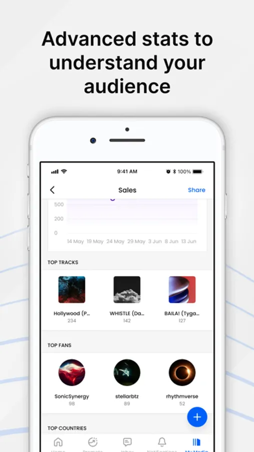 Advanced statistics & sales data: Stay informed with real-time and historical data on the performance of your tracks. Identify leading store sources, top performing tracks, new fans, and insights from top countries.