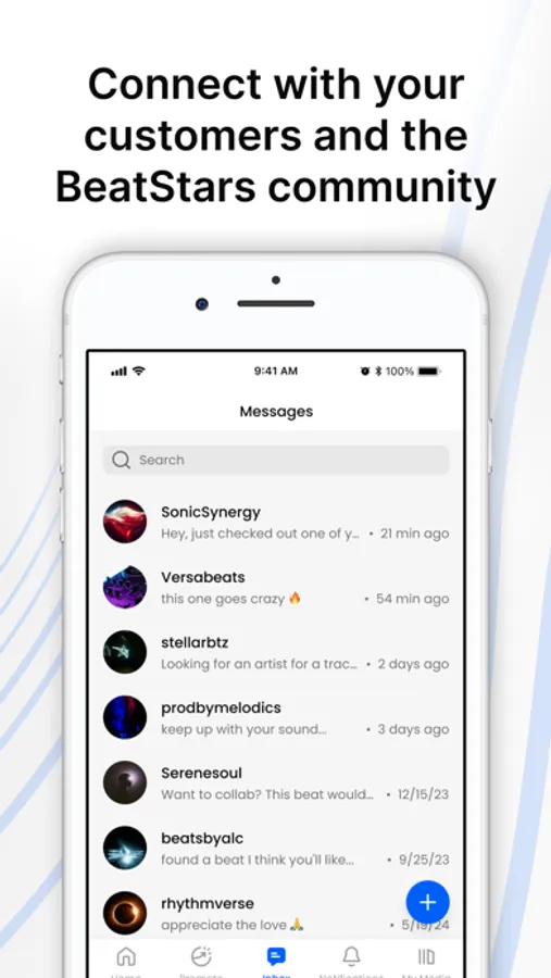Messages and notifications: Connect with customers and other BeatStars community members through direct messaging. Never miss important updates with push notifications for sales and social activities.