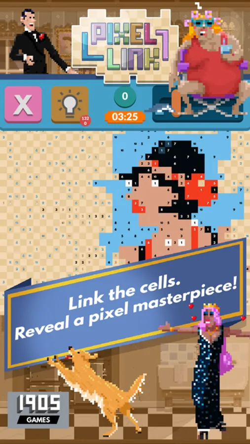 Pixel Links is a relaxing puzzle game all about linking cells that share the same number and same color. Each link you complete colors in part of a picture. Complete all the links and you'll unlock a 'sticker' which you can add to a themed backdrop scene. You choose where the stickers go: move around your completed stickers so they tell a story or make a funny scene.