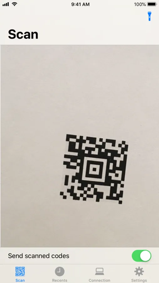 • Scans codes and sends them immediately to your Mac with installed ScanAndSend app for Mac