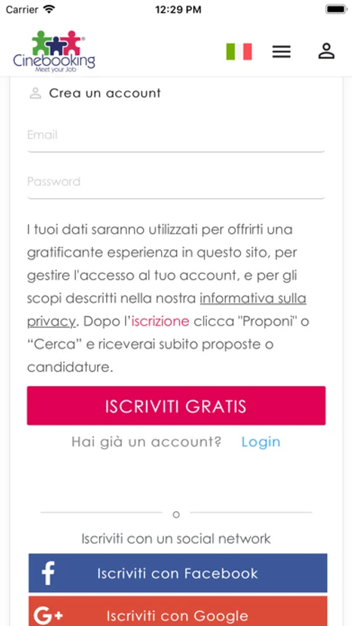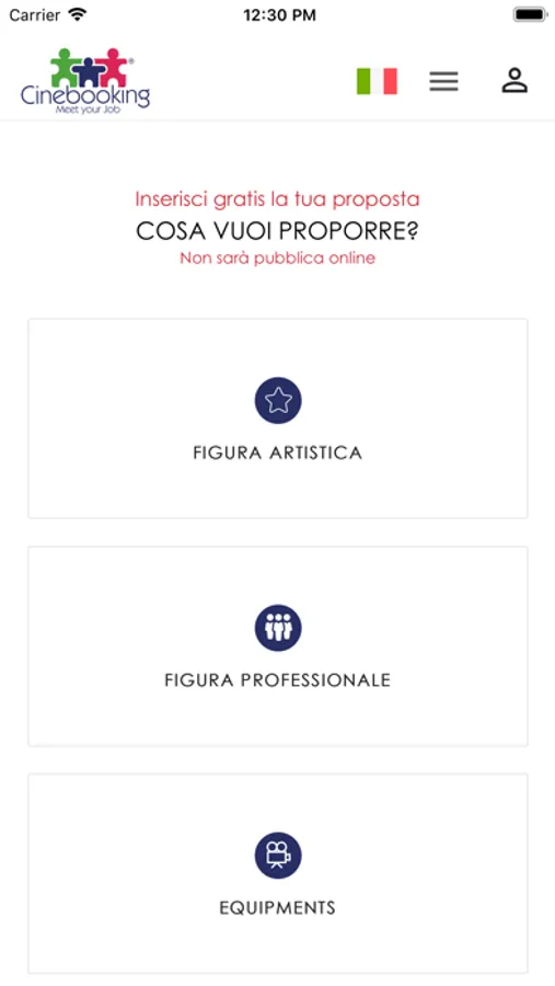 • SEMPLICE e INTUITIVA, è necessaria solo una veloce registrazione, inserendo mail e password, o tramite social, per procedere alla compilazione della scheda, selezionando CERCA o PROPONI a seconda di quale dell’interesse nel cercare o proporre una risorsa tecnica o artistica tra quelle in elenco.