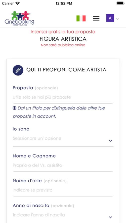 • Dopo aver scelto il campo di interesse, è necessario compilare una scheda di RICERCA o PROPOSTA nella sezione scelta.