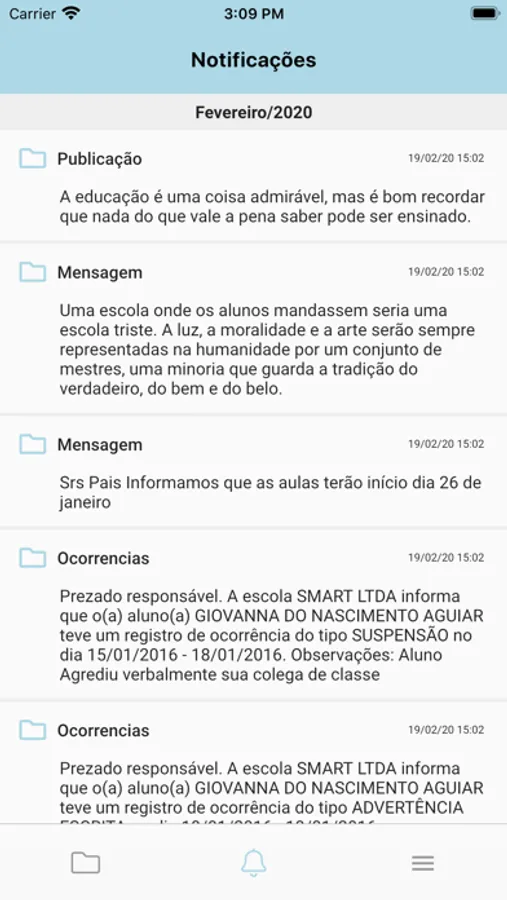 Avisos, ocorrências escolares, declaração de pagamentos, enfim....