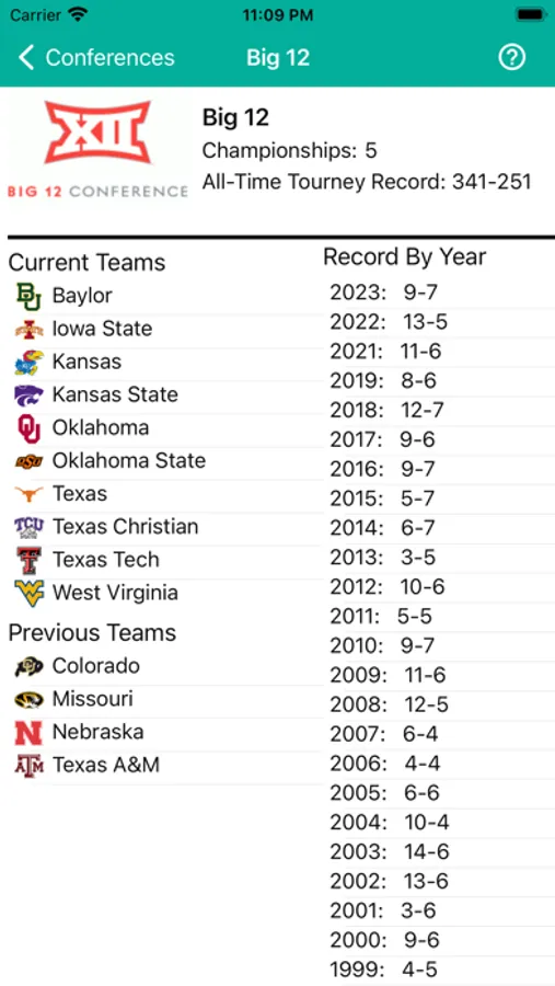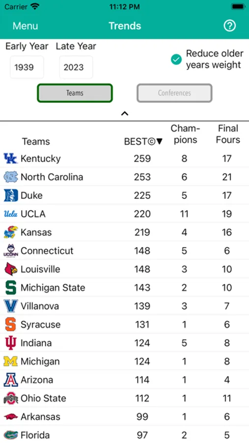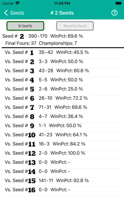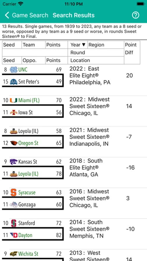 Bracket Master delivers the complete history of the Men's College Basketball Tournament. Every tourney game is presented, from the inaugural 1939 championship to the current day. Each of the 80+ championship brackets can be examined within the app.