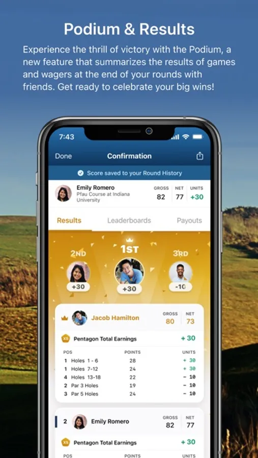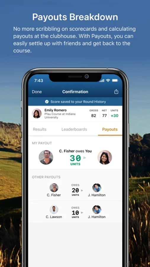 • Add your Handicap to your profile and even the playing field with the Net scoring format