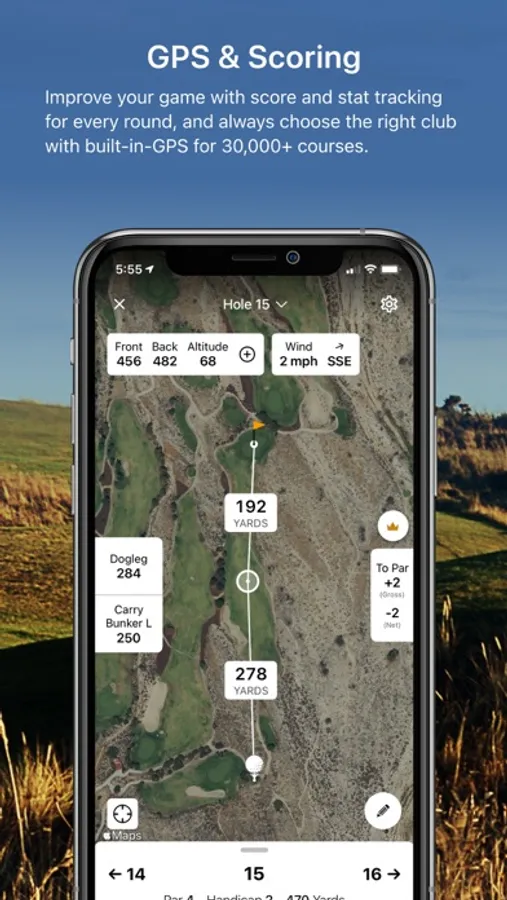 • Track your round with state-of-the-art golf course GPS maps and yardages for 30,000+ courses worldwide