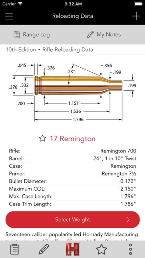 Derived from extensive testing by Hornady Manufacturing Company, this app includes reloading data for over 200 cartridges and 300 bullets. Under carefully controlled conditions using the components and test equipment specified, we report only data that proved safe in our research. Users have the ability to purchase data for individual cartridges, purchase the whole current edition of the handbook, or subscribe and receive the entire handbook plus more. Subscription provides access to all handbook data on your mobile device and real updates for all new data without waiting for the new handbook publication to be produced.