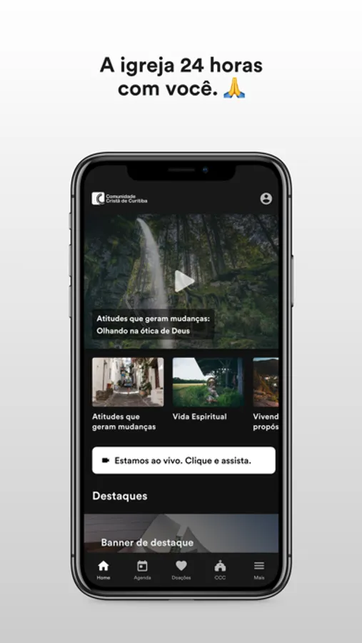 - Conecte-se com a igreja através dos grupos de interesse, receba conteúdo direcionado e obtenha sua carteirinha exclusiva.