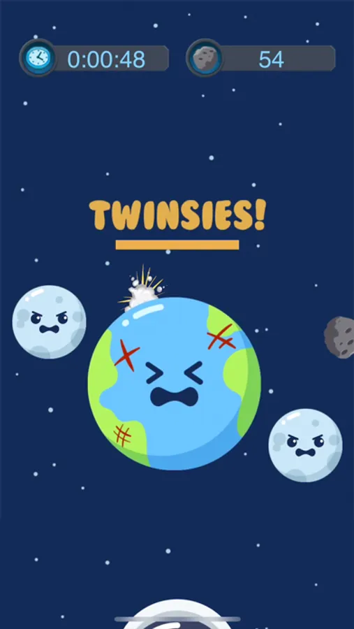 - Twinsies: Two Moons are better than one! Another Moony appears and helps block asteroids.
