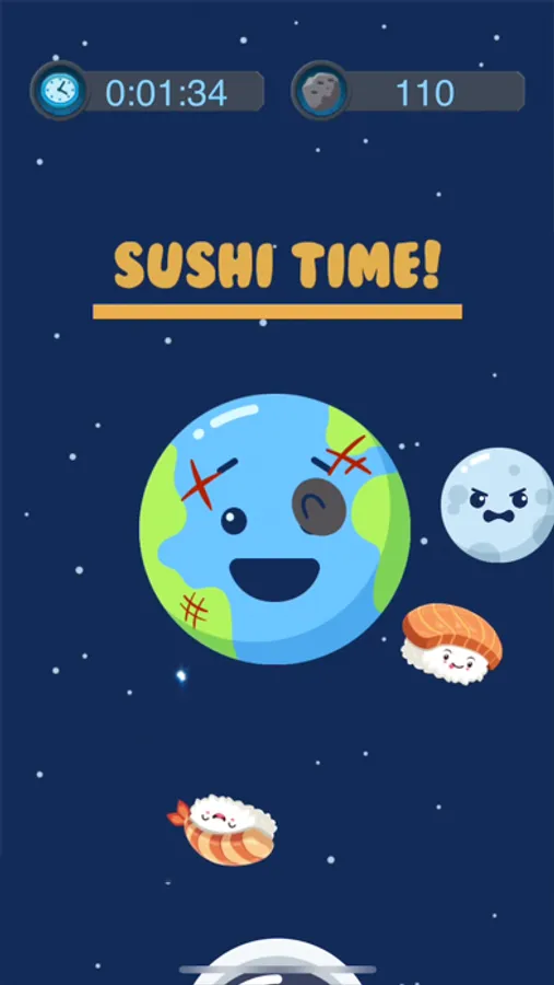 - Sushi Time!: Asteroids turn to sushi and give your Earth health when they hit it.