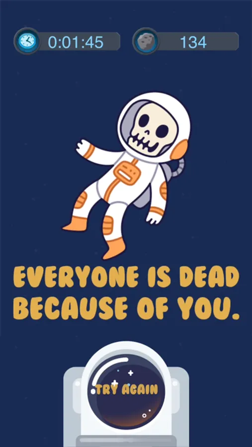 - Chillax: You and your Earth enjoy 12 seconds of no asteroids (sunglasses and chill music included).