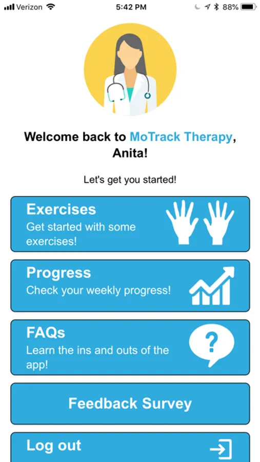 Disclaimer: Use of app is at your own risk. Please confirm any information obtained from or through this app with your physical/occupational therapist or another professional healthcare provider. If you experience any pain while using the app, please stop usage and contact your healthcare provider for further instructions. At this time, MoTrack Therapy is not intended to be a standalone medical treatment but rather a supplement to in-clinic physical/occupational therapy sessions with guidance from certified medical providers, and should be treated as such. MoTrack Therapy is not intended to be medical advice.