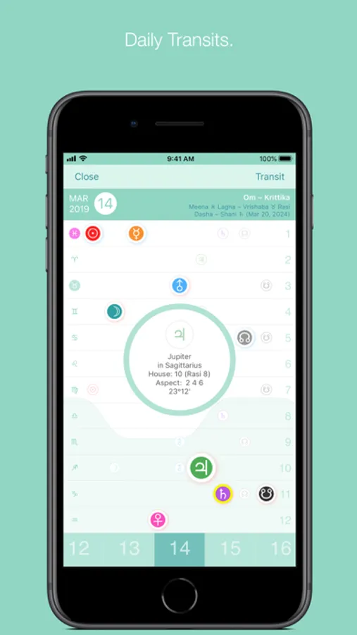 North Indian, Western & South Indian styles. Interactive. Graphical. Natal charts. Daily transits. Get notified of Dasha changes and daily Gochara. Compare charts using Ashtakoot compatibility check.