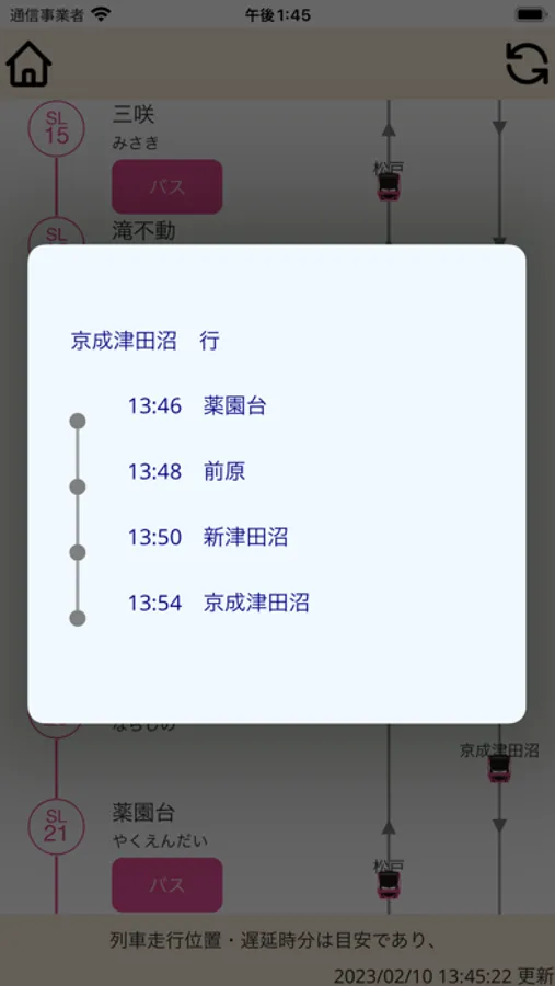 新京成線の車両の現在位置、遅延情報をリアルタイムで取得し、視覚的に表示します。