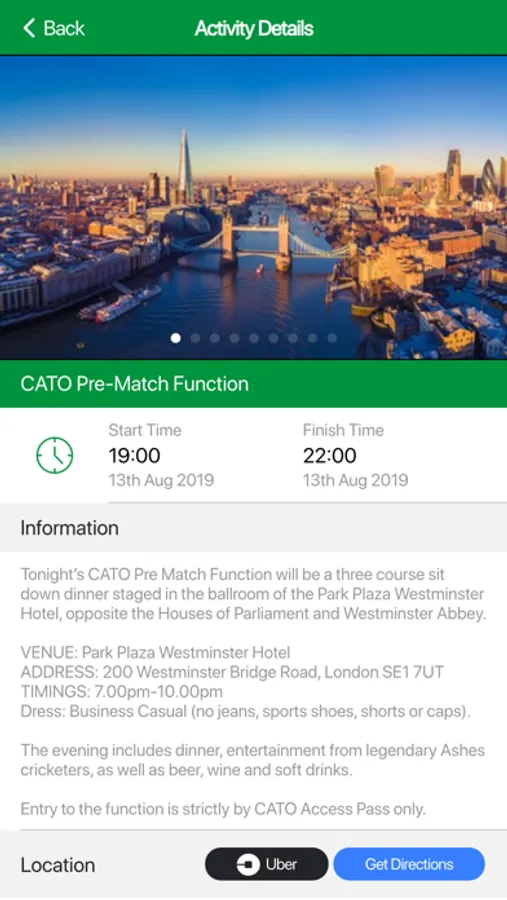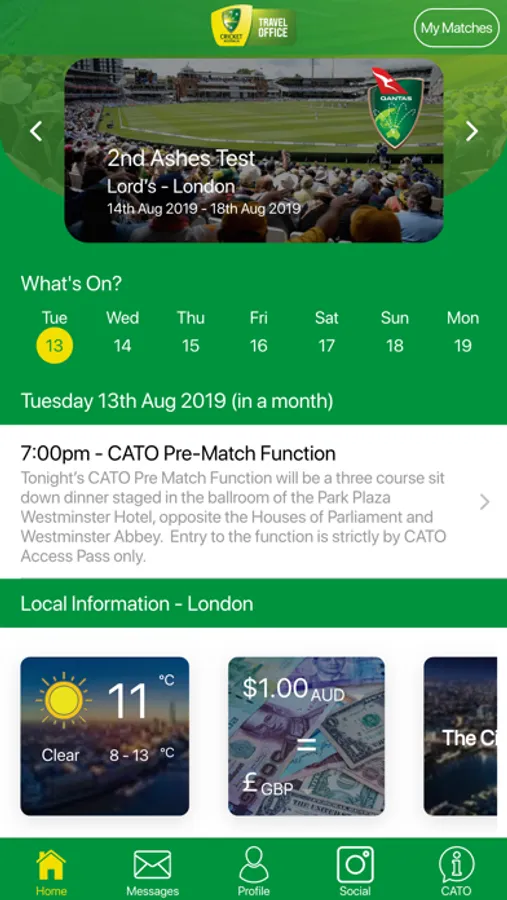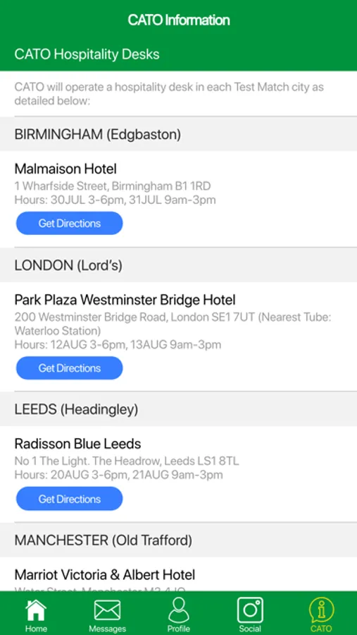 The CATO mobile app allows guests travelling with and/or attending matches with CATO to: