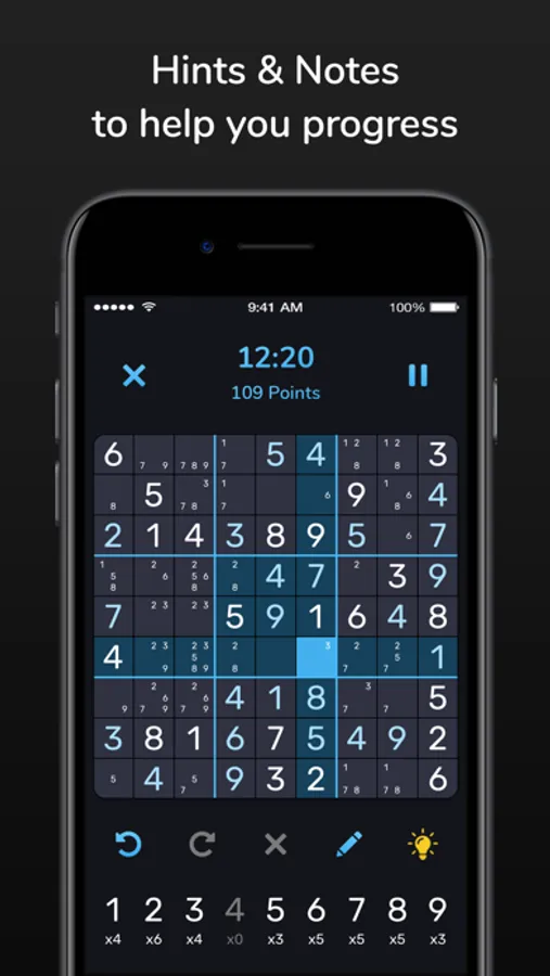 - The simple to use notes and hint features help you if you get stuck but we encourage spending time trying to figure out the puzzles without using hints. Cells filled with use of hints don't get any points.