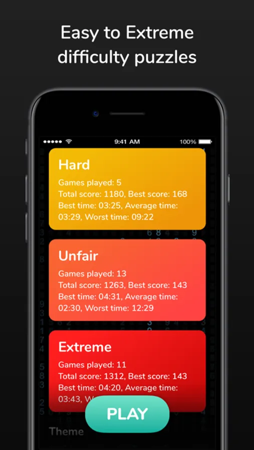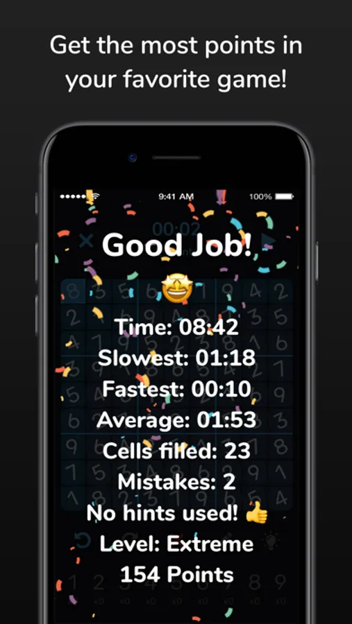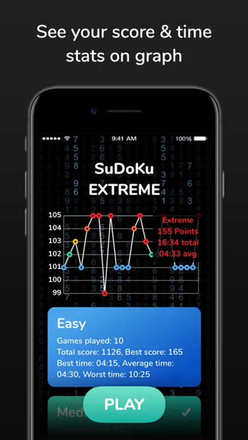 - After a game is finished, you get your overall stats like total time spent, best time, average time, overall score, hints used, mistakes made etc. Sudoku Extreme also comes with a graph of how your scores progress over time. As you play more difficult levels, you get more score. Each higher level gives twice the number of points as the previous level.